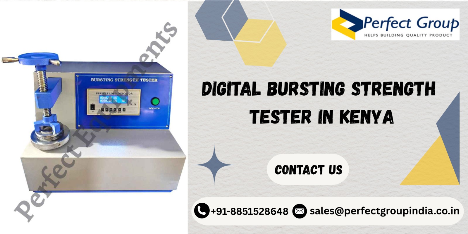 It is now important to have a Digital Bursting Strength Tester in Kenya. There has never been more demand to produce high quality products due to the growth of industries and increased competition. Kenyan companies can make sure that their products last—literally—by investing in dependable testing equipment from Perfect Group India. Today, take the first step towards excellence in quality control. Get the most dependable equipment in Kenya for your company through choosing Perfect Group India.