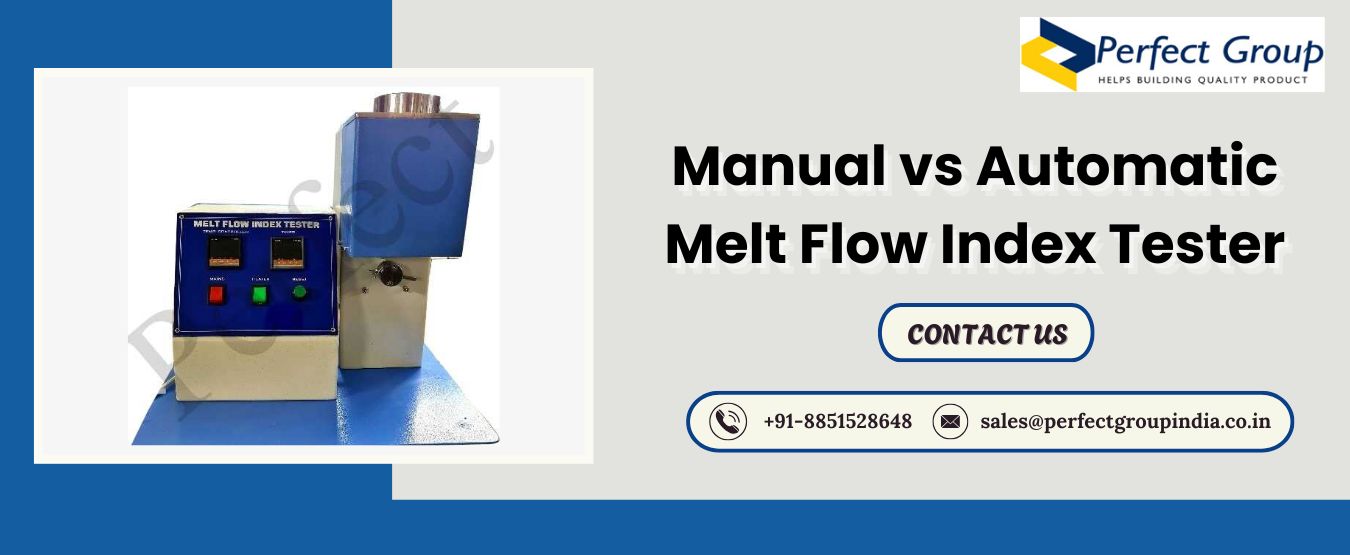A comparison of manual and automatic Melt Flow Index Tester reveals major differences in performance, accuracy and usefulness. Manual testers need practical operations that are affordable and provide reliable results for low volume labs. They are perfect for simple testing needs. Automatic testers on the other hand work well for high volume settings since they produce results more quickly, accurately and continually with a lower level of human errors Both play important roles in polymer testing depending on the budget and workflow. Perfect Group India provides dependable manual and advanced automatic MFI Testers that are designed to satisfy a range of testing needs and industry standards.