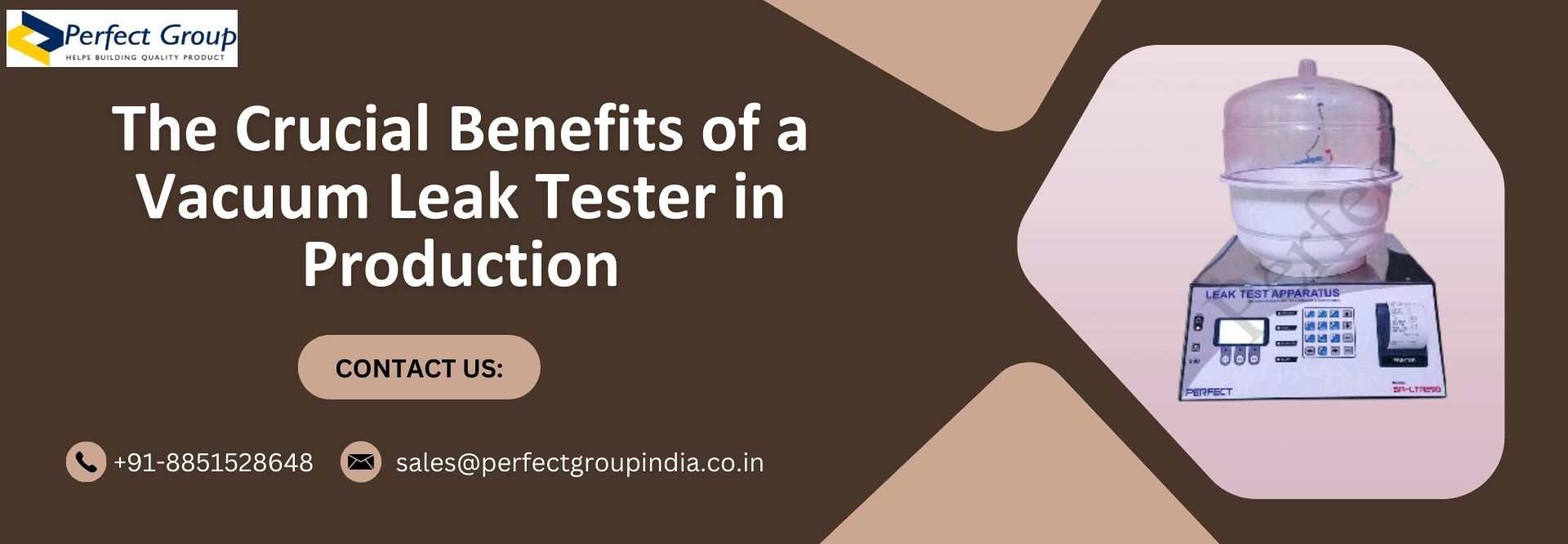 A vacuum leak tester is important for maintaining the quality of packing, preventing product contamination, reducing waste, and protecting brand reputation. Success in today's competitive manufacturing environment depends on guaranteeing product quality and safety.Manufacturers can improve packing durability, follow industry standards, and reduce the possibility of expensive recalls or product damage by integrating this important technology into the production process. The vacuum leak detector is a useful tool for any company trying to guarantee premium, leak-proof packaging because of its many uses and long-term cost savings advantages. One of the top suppliers of premium testing equipment for plastics, packaging, and other materials is Perfect Group India. We provide advanced solutions that guarantee product quality, durability, and safety across industries.